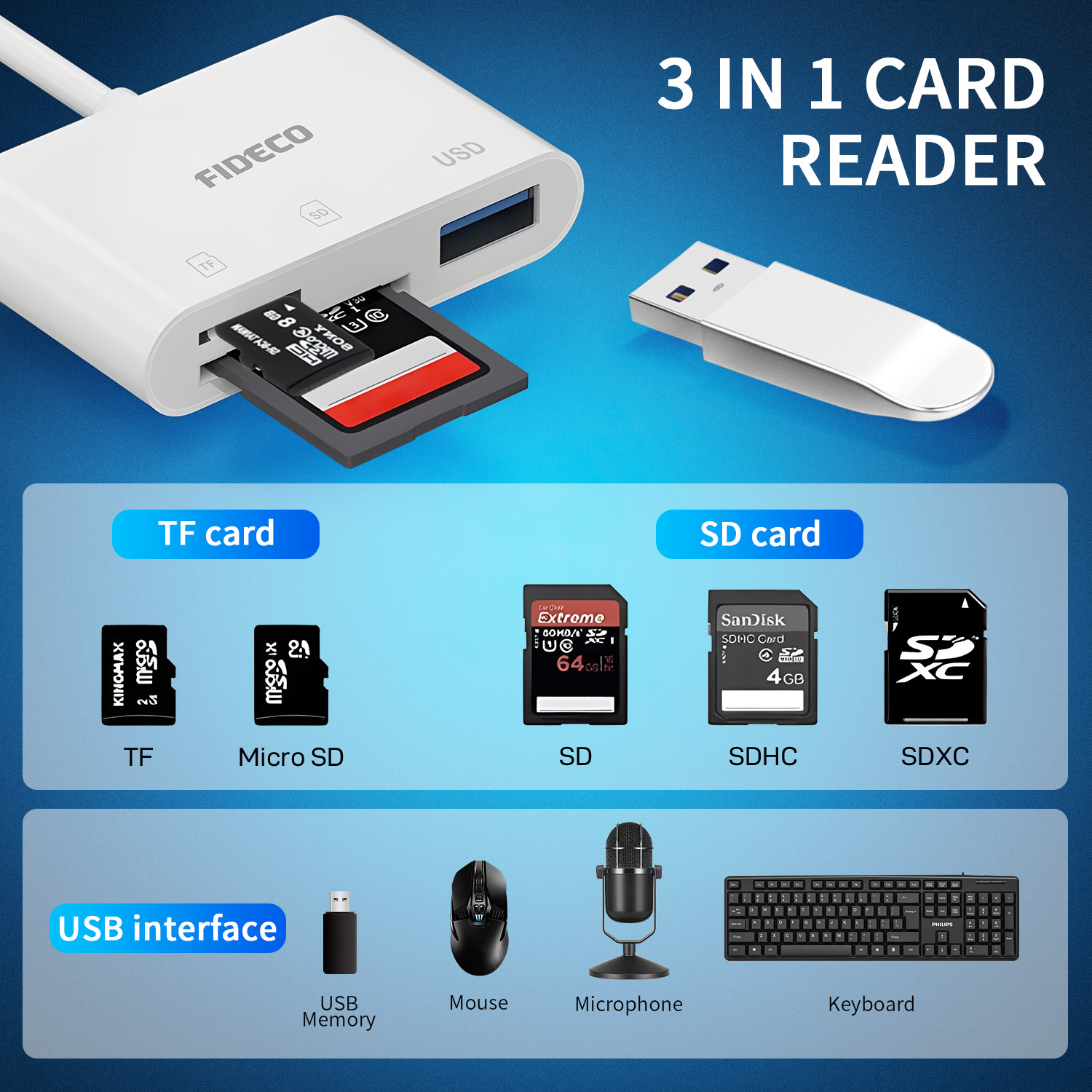 SD TF 3 IN 1 Card Reader